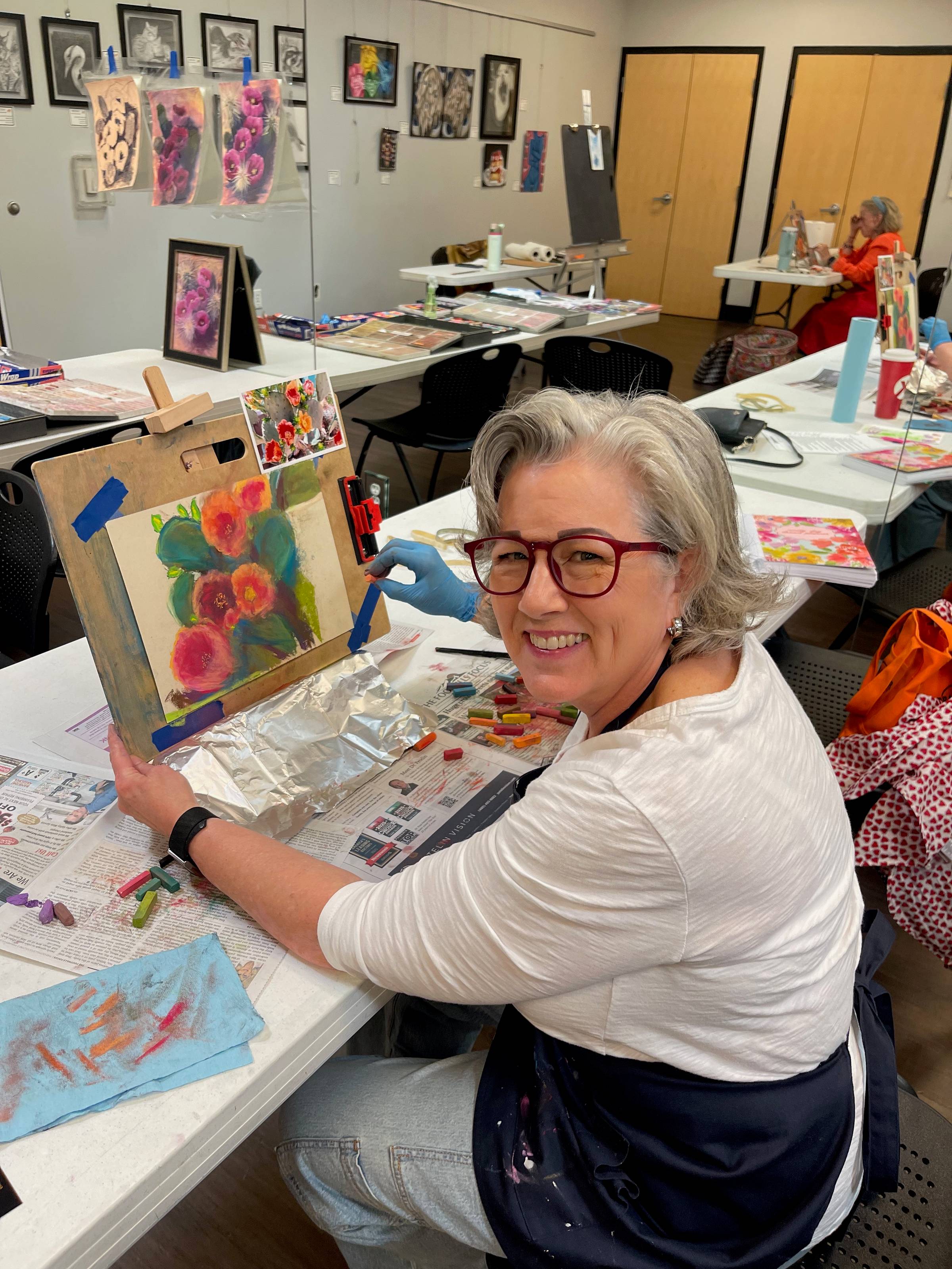 Happy Saturday my friend! I hope you had a great week! I'm busy with art and sunshine here in the desert. Since my last note to you, I've taken THREE art classes! :) Here are the results: Class #1 - Oil Pastels: (Teacher led, I know the shadows are all wrong - it was an exercise in technique - thus the mis-lighted finished product.) :) Beginning Oil Pastel Class Verdict: Love the color, but the process is super MESSY. I'll probably use the oil pastels for accent, but I can't see myself...